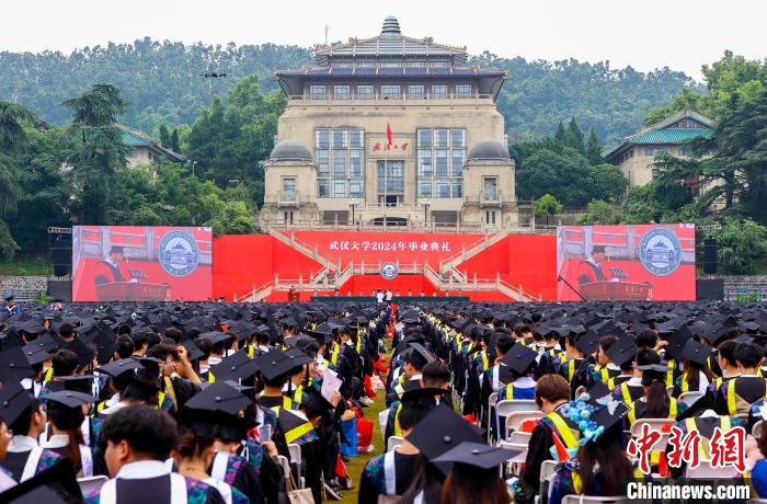 6月20日上午,武汉大学2024年毕业典礼在该校九一二操场举行。12000多名毕业生齐聚一堂,财盛证券共同见证这一难忘时刻。图为毕业生合影留念 。中新社记者张畅摄