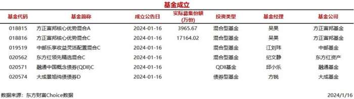 南方财经1月16日电,据东方财富Choice数据统计,实盘配资平台今日共有6只基金公告成立(A/C类分开计算),包括4只混合型基金、1只QDII基金、1只债券型基金。